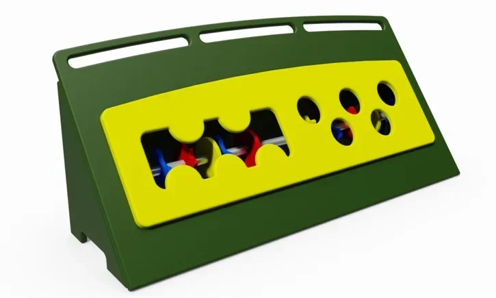 Discover a world of sensory adventure with our Bead Sensory Box! When a kid reaches into the box, they’ll find multiple shapes and colors, all of which spin and slide on an internal bar. This accessory is a perfect developmental tool to foster both social and independent play. With the Bead Sensory Box, kids will learn to play cooperatively and problem solve as a team. The top section of the box features slotted handles that make repositioning quick and simple. The Sensory Box measures 48” x 16” x 21” and is ideal for kids ages 6 - 23 months. It can entertain two to three children at a time and is the perfect addition to your classroom or playground.