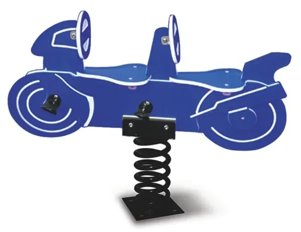 The Double Seat Blue Motorcycle by Childforms is a compact spring rider seating up to two children provide lots of fun.