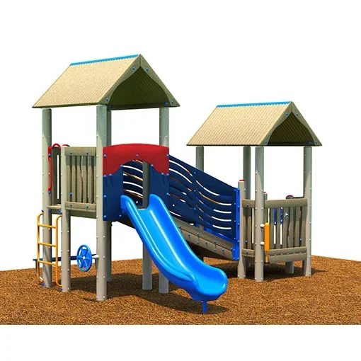 Climb into our compact, smartly-designed playset with the Cavern. This set boasts an attractive wood layout, with dual towers and a gable roofline, and it comes with seven fun activities for kids of all interests. The Cavern’s active accessories include a Bubble, Whistle, Enclosure with Big Wheel, Play Counter, Vertical Access Climber, Slide Pole and Curly Step, and SoloChute Slide. The structure is constructed of 75% sustainably-sourced, Forest Stewardship Council Certified wood content and boasts recycled plastic and scrap metal details. The Cavern makes an excellent choice for organizations seeking to optimize small green spaces, and it can accommodate up to 25 children of all ability levels, thanks to its ADA accessibility. Whimsical cave creatures not included!