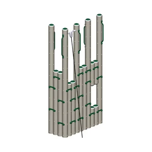 Kids can have daring alpine adventures as they scale this playground Climbing Wall. This versatile structure is available in a variety of different configurations, so that you can have the perfect one to fit your play area. The vertical posts have small plastic handles on them, which children can grip with their hands, or use as footholds as they scale the wall. Climbing ropes offer another way for kids to climb, letting them simply walk vertically up the wall while holding the rope and using the footholds for support. The Climbing wall is great fun and great exercise. Its wide area gives kids plenty of space to maneuver without the structure needing to be dangerously tall. This unique climbing activity makes a great addition to whatever other styles of climbers your playground already has. The vertical posts can be ordered with your choice of natural wood or recycled metal building materials.