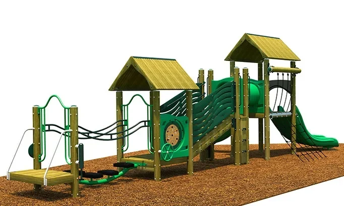 Kids reign as kings and queens of the castle with the Fortress Playset. With its sprawling design, classic style, and smart details, the Fortress is a traditional play structure for modern families. Its wood layout is constructed from 72% Forest Stewardship Council Certified Wood content, with sustainably-sourced recycled plastic and metal elements. The Fortress features a whopping eleven interactive activities, including two slides, a Net Cargo, a Climb Wall and Rope, a Big Tunnel, Wave Panel, Stepping Stone Bridge, and much more. The play structure holds up to 35 children, so that teachers can bring their entire class out to play. ADA accessible, the Fortress accommodates for lords and ladies of all ability levels. Its sturdy design will hold up to years of everyday use and continuous active play.
