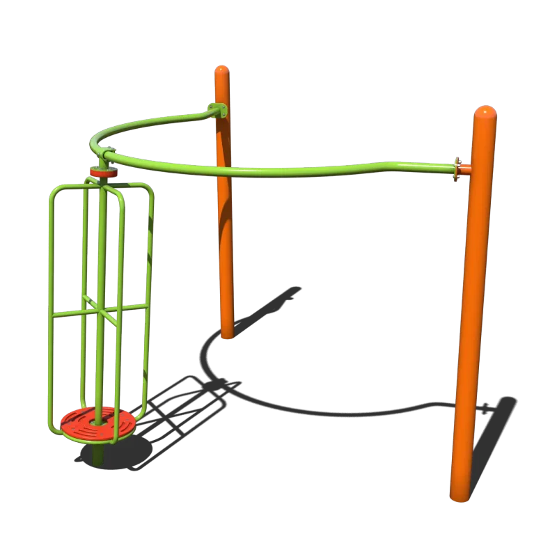 The Sonic Spinner is a thrilling play activity that will excite every kid on the playground. The twin support posts that stand to both sides of the spinner give it an awesome appearance while also ensuring that the spinner stays upright and safe. Children operate the spinner by standing or leaning on the central rotating platform, then building momentum by shifting their body weight in circles. A friend can also help get the spinning started by pushing. The vertical bars around the rotating platform offer secure places for the kids to hang on to, so that they can go fast without having to worry.