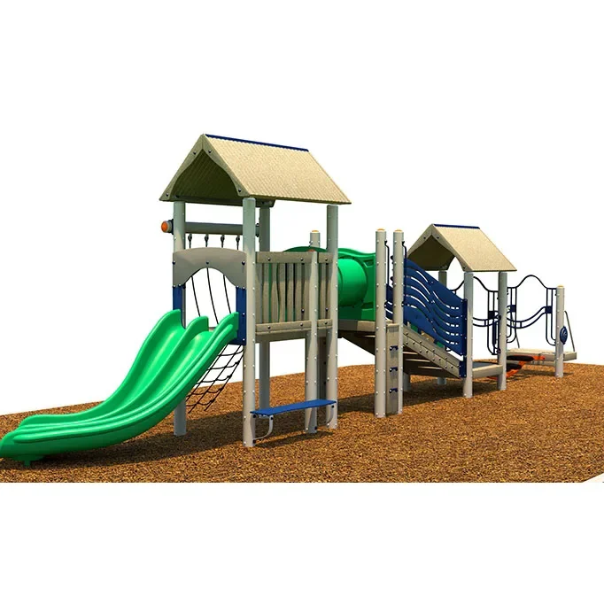 Featuring twelve amazing activities and a sprawling design, the Harbor Playset has something for everyone. Constructed from 70% sustainably-sourced, Forest Stewardship Council Certified wood content, and featuring recycled plastic and scrap metal details, the Harbor playset is an environmentally-conscious choice for caregivers and administrators. Its accessories include a Curved DuoChute Slide, Play Counter, Climb Wall Platform, Invent-a-Game, Whistle, Stepping Stone Bridge, Big Wheels, Net Cargo, Tube Tunnel, Wave Panel, and more. It measures 52'1" x 21'1" and can fit up to 35 children comfortably, making it a boon for teachers during recess. ADA accessible, it’s the perfect structure for children ages two and up of all ability levels.
