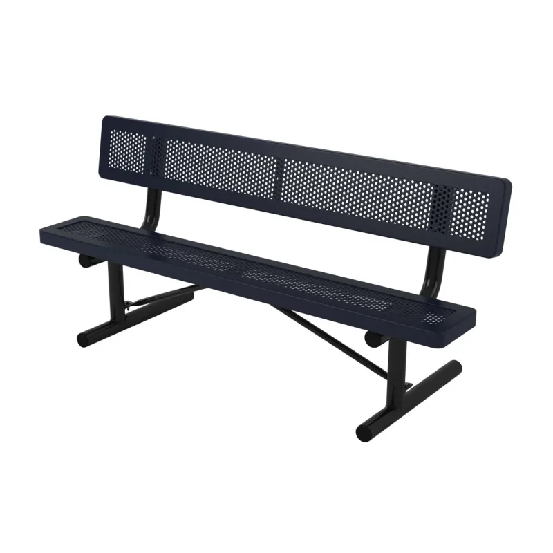 Physical activities practically require this Innovated Style Park Bench With Back by Webcoat due to its breezy and lightweight design. This bench is a must-have for locker rooms, sports fields, tennis courts, and other outside areas. It is an ideal choice due to its small hole perforations as it protects against the sweaty and dirty smells that occur with intense physical activities. Infinity Innovated styles, which means it has a small perforation pattern in the seats for a smoother look and feel. This bench is made of punched steel which will last for the years to come. It has a 17-inch height making it an accessible size for people of most ages and sizes. Choose the length of your bench with options ranging between 6 to 15-feet. You can choose from a surface or in-ground mount or a portable option for more flexibility. Choose from a variety of color coating options that will make your bench stand out while protecting against rust and degradation.
