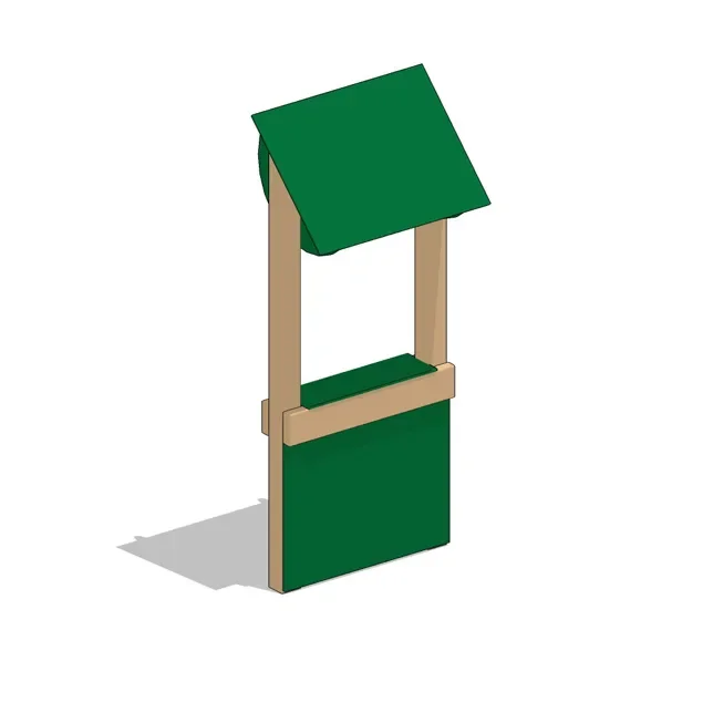 This simple and versatile village structure acts as a blank canvas upon which children can project their stories and imaginative play. Kids can use our Market 2 Post to create a lemonade stand, act out a farmers market, or construct a pretend library. The possibilities for exploration and entertainment are virtually infinite. Perfect for playgrounds or a creative and unconventional backyard space, The Market 2 Post includes a Half-Village Roof with graphics and a Storefront Panel with graphics, and can be installed to be freestanding or attached to an existing wall. Our inground panel is designed to be ADA accessible, ensuring that children of all abilities can participate in the fun.