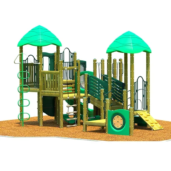 Bridge the divide between development and fun with the interactive Overpass Playset. The sprawling Overpass structure boasts a collection of twelve exciting accessories, including a Hurricane Spiral Slide, Wacky Wood Climber, PlayShell Double Seat, Mountain Climb with Rope, Bubble, Wave Panel, PlayShell Spiral, Rock Climb, Welcome Mat, Labyrinth, Rope Ladder, and Loop Climber. The set measures 31'11" x 24'10” and was created using 60% Forest Stewardship certified wood content, making it a sustainable choice. Perfect for children ages five to twelve, the set accommodates up to 40 children, and is ADA accessible so explorers of all ability levels can engage in social and physical play!