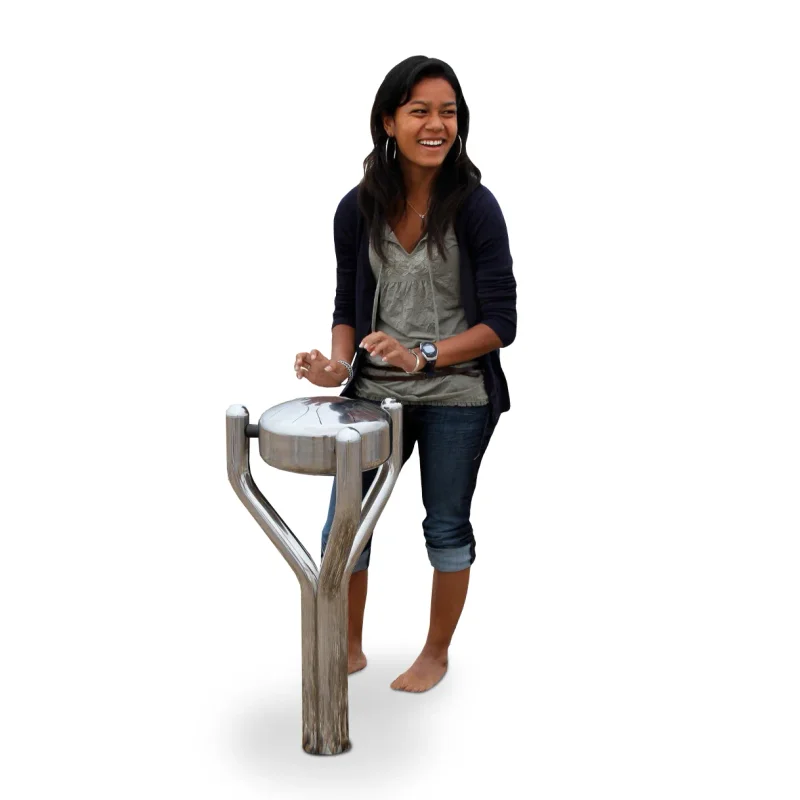 Compact, with a beautiful sound, the Babel is sure to add resonant melodies to your outdoor space. Featuring six lovely notes, the Babel Drum is simple to play, creating a variety of tones and rhythms that will echo through your school, park, or museum’s green space. Tuned to a C major pentatonic scale, it creates warm, pure sounds with superb clarity. The Babel Drum can be mounted using in-ground or surface mounts. For elderly and special needs drummers, mallets can be used to produce more sound and can be purchased separately. With the Babel Drum, patrons will engage in social play, enhance their creativity, and gain confidence in their musical abilities. Music, through drumming, is an excellent way of connecting the community.