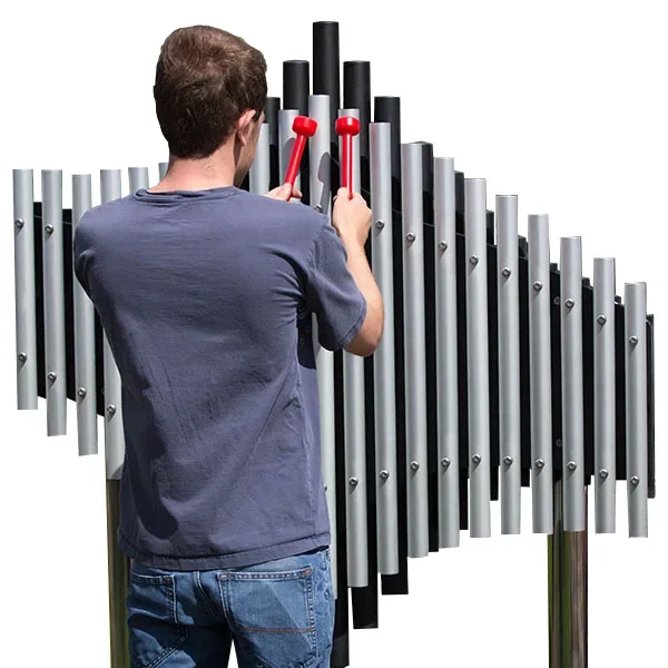 Resonant and enchanting, the Sonora delivers beautiful melodies to musicians of all ages and ability levels. ADA accessible, it creates a stunning focal point for schools, museums, and care centers, especially those focused on holistic and creative therapy. The twenty-one tubular bells are constructed from hand-tuned, heavy-duty anodized aluminum, each mounted individually over impact-resistant ABS plastic resonators. With options for wall mounting of a fixed post-installation, it features a striking, wave design boasting a contortion that changes depending on the viewer’s vantage point. Musicians can strike the bells with mallets for lovely, sustained tones. And the pentatonic scale means “no wrong notes,” so amateur and seasoned players can create gorgeous melodies with confidence. Please note, high-use options are also available for high-use or unsupervised applications.