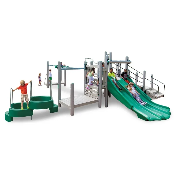 Traverse to the top, and stake your claim (to fun!) with the Pinnacle Playset. This activity-packed model integrates a variety of accessories, enticing kids of all ages and skill levels to engage in social and physical play. Through their imaginative romp, kids will develop both hand-eye coordination and balance skills. The Pinnacle features lots of activities, including a Triple Slide, Firefighter’s Tower, Mountain Climb, Curly Climber, Sky Game, and Play Shell Traverse. It also features a wheelchair transfer point, making it a playset for children of all ability levels. The Pinnacle is constructed from 62% Forest Stewardship Council Certified wood content and can comfortably accommodate up to 34 kids.