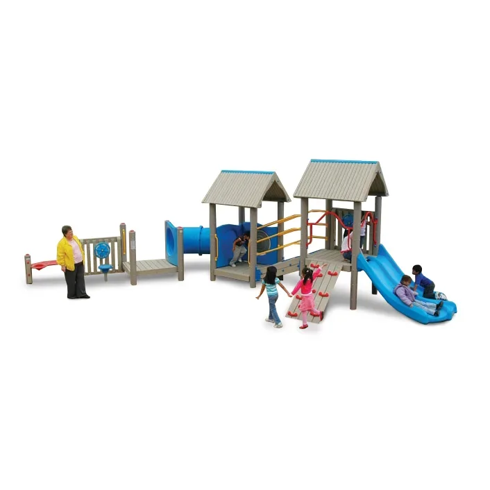 Young children will have a great time outdoors with the Portico playset. This brilliant structure for preschool aged children encourages them to be physically and mentally active. The DuoChute Slide, Rock Climber, and BigTube Crawl Tunnel will have kids exercising in a variety of ways as they move throughout the playground. The two Big Wheels (one with a convenient PlayPod seat) allow kids to drive imaginary cars, ships, and starcraft. And the Bubble Window panel and Play Counter with Bowl allow kids to examine the world and playground around them. The Portico is available in either wood or metal.