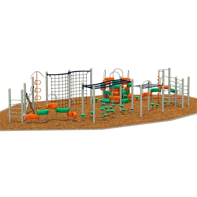 Travel to a dreamscape of climbing adventure with the unique and activity-packed Quadrant. This playset is the perfect place for kids to hone their balance, hand-eye coordination, and social skills. The Quadrant’s bevy of activities includes a garden of Playpod Pedestals, PlayShell Fort, a Curly-End Climber, a Curved Ladder, a Playpod Maze, a Curved Vertical Net, Inclined Columns, Climbing Arches, and much more. The Quadrant measures 63'0" x 38'0" and can hold up to fifty kids with ease. It’s made from 19% recycled content, with a wood option of 23% Forest Stewardship Council certified wood content. With the Quadrant, you’ll swing into developmental fun, and delight kids ages five to twelve.