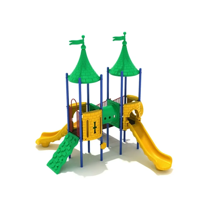 Heavy on regality and heavier on fun, Royalty Ridge is another offering from PlaygroundEquipment.com’s Castle Series of play structures.