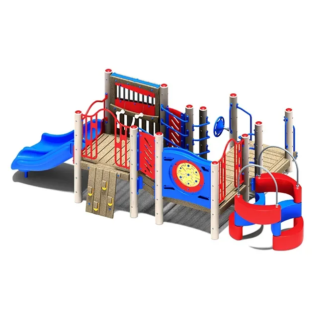 Head for the hills with this fun and engaging structure. Kids will enjoy stretching their legs and running across the platforms of the West Hills Playset. Featuring decks of multiple heights, Playshell Climbers, and a new, Exploratory Climber, the West Hills structure is chalk full of exciting accessories and physical challenges. Plus, it also includes highlights that promote dramatic and social play, like a BigWheel, DuoChute, and Xylophone. The West Hills is a large playset that can fit an entire class of up to thirty kids, and it has a use zone measurement of 31'10" x 24'2". And thanks to a wheelchair platform extension and board, the playset is ADA accessible, making it an ideal structure for children of all interests and ability levels.